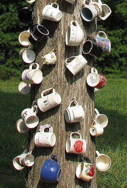 I spotted this tree on the side of the road heading home! The trunk of it is covered with CUPS! How weird and I love it! I wonder if it has any particular meaning to the cups (like the Indians bottle trees) or it's just someone's idea of a fun thing to do.